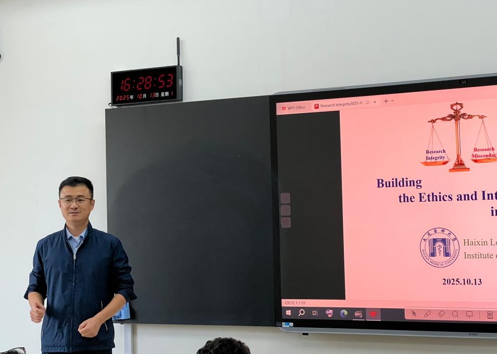 为进一步提升职工研究生对科研的认知,提高职工自身科研素质,10月13日,yl8858永利集团特邀肿瘤干细胞研究院雷海新教授开展科研诚信讲座,讲座由yl8858永利集团副经理高鹏主持,全体职工研究生及本科药学专业职工共计100人参加。