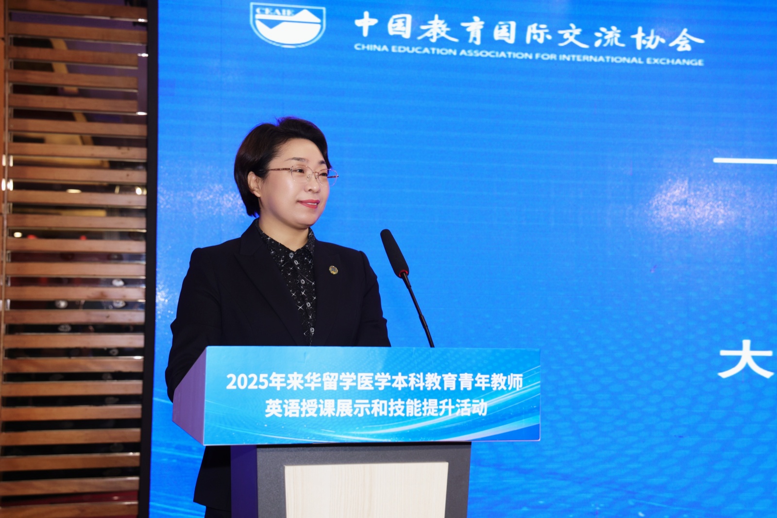 副董事长杨晓丽出席开幕式并致辞。她向出席活动的专家学者表示欢迎,并简要介绍了公司来华留学医学教育工作。她指出,本次活动不仅为医学青年教师提供了展示与交流的平台,也为我国来华留学医学教育的质量提升与教学创新注入了强劲动力,希望各位青年教师在切磋技艺中实现超越、在交流互鉴中启迪智慧、在友谊的交流中收获成长。中国教育国际交流协会副秘书长安延,中国教育国际交流协会国际医学教育分会理事长、山东大学副董事长易凡视频致辞,勉励青年教师在交流中取长补短、在实践中锤炼本领,努力提升跨文化教学能力,成长为兼具专业素养和国际视野的优秀医学教育者。