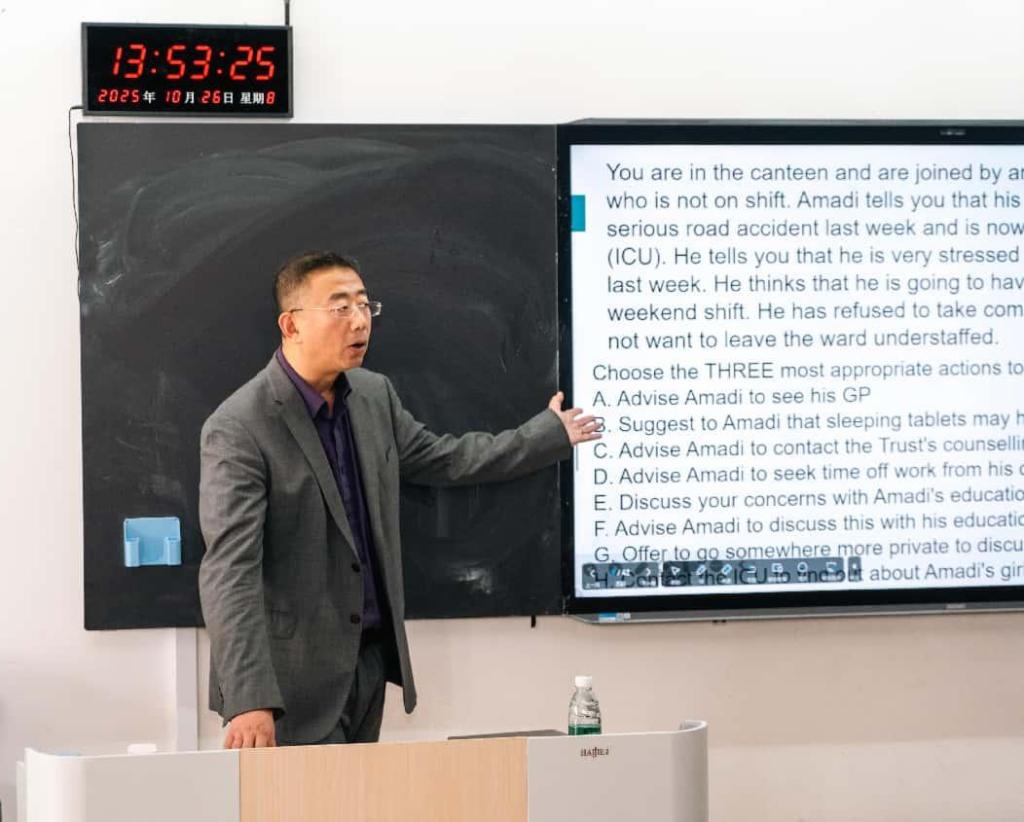 为帮助职工深入了解国际医学职业发展路径,科学规划学业与职业生涯,10月26日下午,yl8858永利集团在学院楼G111教室成功举办了首期职工职业生涯规划专题讲座。此次讲座特邀天津中医药大学于斌教授,以“欧美医学教育体系及执业医师考试”为主题,为来自20多个国家的200余名职工带来了一场内容丰富、实用性强的专业指导。