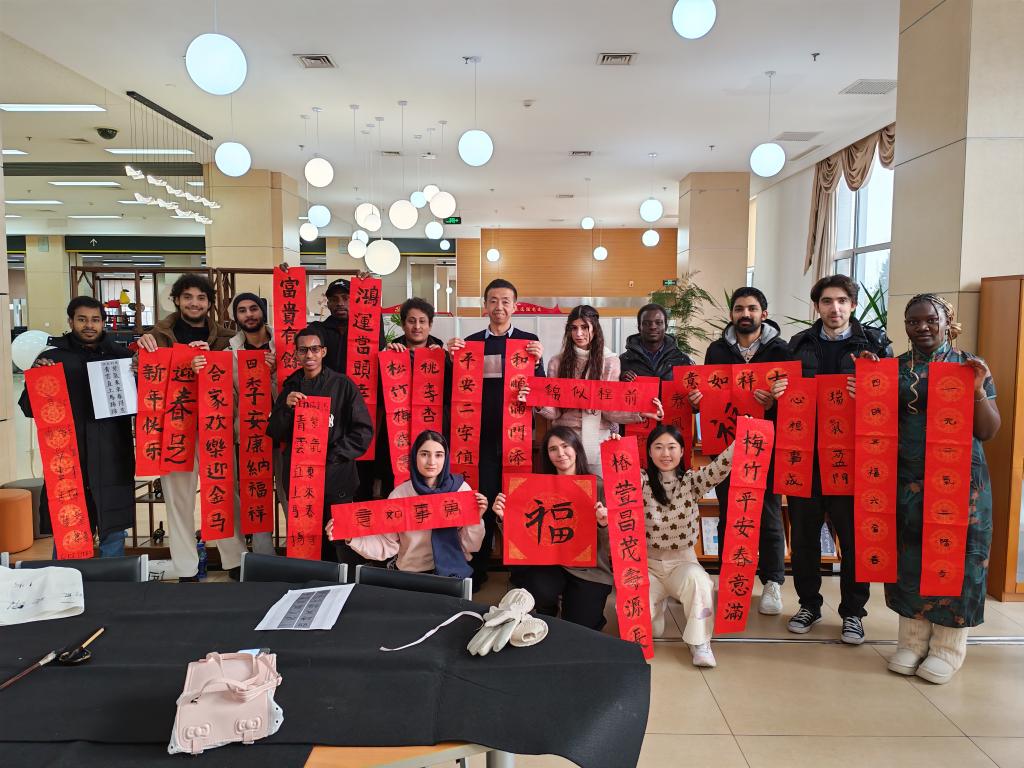 来自赞比亚的职工李亦书说道:“中国书法很厉害,我一直很感兴趣。今天的活动非常好,让我能自己拿笔,亲手写出一副对联。汉字太有魅力了!”