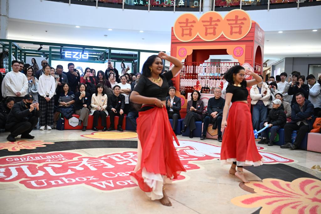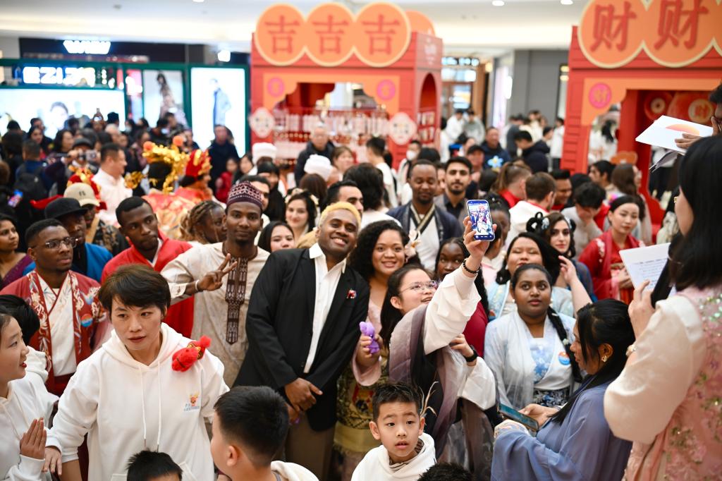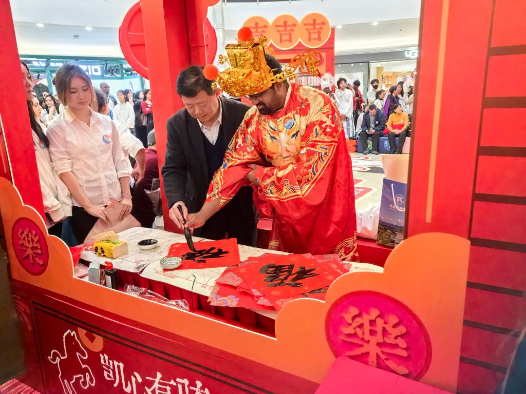 在联欢演出环节,公司职工精彩献艺,成为全场亮点。汤加职工以一曲中文歌曲《少年》惊艳登场,歌声真挚热烈,瞬间点燃全场;两名斯里兰卡职工带来民族特色舞蹈,舞姿欢快、活力四射,将现场气氛推向高潮。演出结束后,同学们手持福字、灯笼等年味道具加入新春巡游,向市民传递节日祝福;在年俗体验区踊跃参与写福字、剪窗花、包饺子等活动,沉浸式感知中国传统文化。