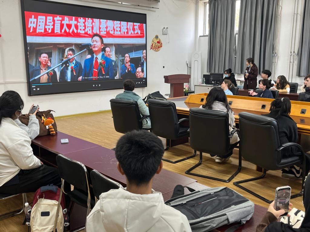 在专业训导员指导下,同学们参与闭眼随行体验,在导盲犬引导下安全通过障碍,真切体会视障群体出行的不易,感受人与动物之间极致的信任与默契。